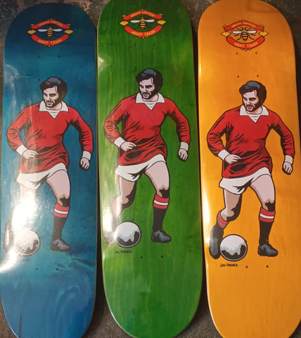Ben Grove guest board with a graphic penned by Jon Horner, of legendary football icon - George Best IN LIMITED EDITION GREEN.