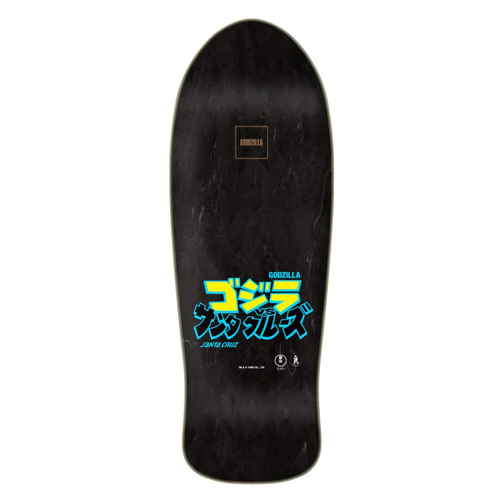 Santa Cruz Skateboards Godzilla Natas Mothra deck featuring spot matte graphics with silver rainbow primatic foil, Godzilla vs. Santa Cruz deck top graphics and laser engraved Godzilla logo. 7 ply North American Maple pressed individually using epoxy - making a strong, responsive deck with long lasting pop and consistent concave and kick.
